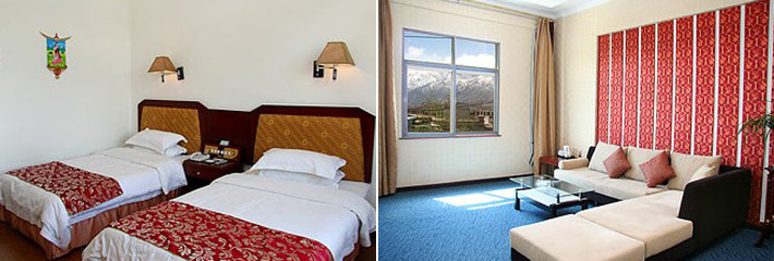1.達到掛三星的標準,對旅行社推的是準四星.2.舒適干凈,成都訂做的品質家具,歐式窗簾,高檔即花布單.3.位置極佳,住在酒店部分房間坐觀布宮.一覽無余,離布宮及新建的公園僅500米不到,離市內各大景點僅5分鐘左右.4.四川掛牌四星級酒店,18年經營管理岷山大飯店的下屬管理單位。